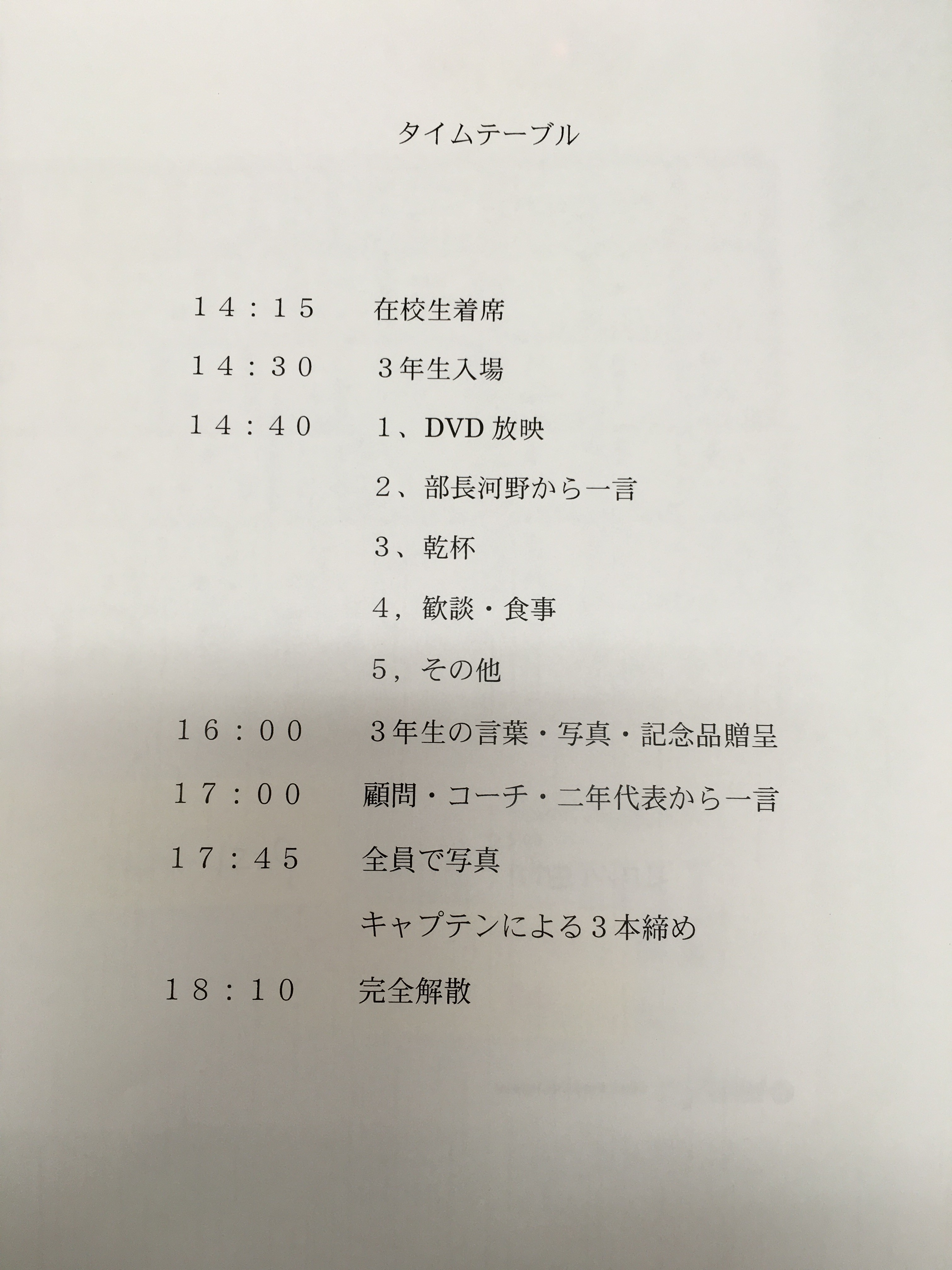 送別会のタイムテーブルですのでご確認下さい。